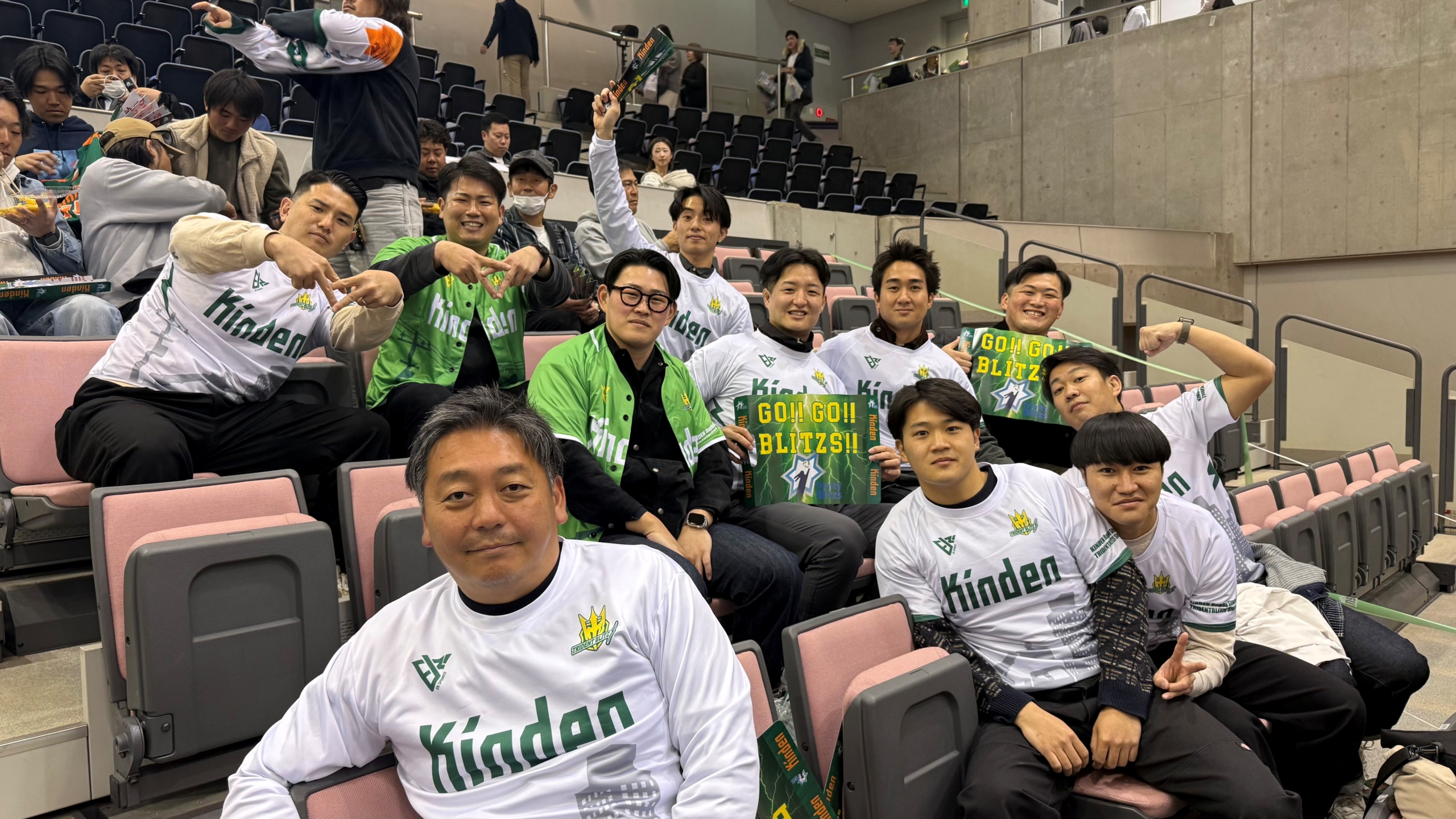 2026年3月21日(土)に岸和田市総合体育館で開催されました当社バレーボール部「きんでんトリニティーブリッツ大阪」のホームゲーム最終戦にラグビー部一同で応援に行きました。